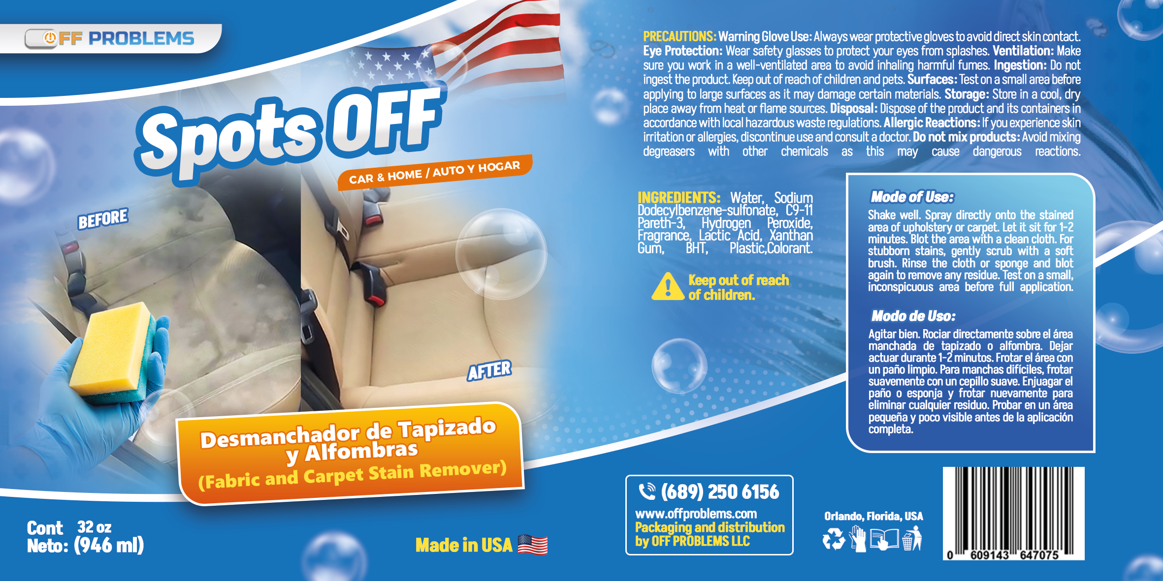 Spots Off Car & Home – Quitamanchas de tela y alfombras, botella de spray de 32 onzas, fabricado en Estados Unidos